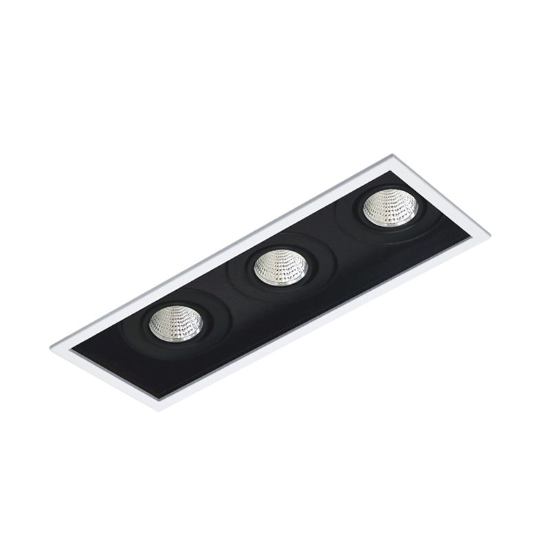 Embutido LED retangular, com triplo foco orientável. Fabricado em alumínio, com acabamento em pintura eletrostática. Possui refletor em alumínio metalizado alto brilho.