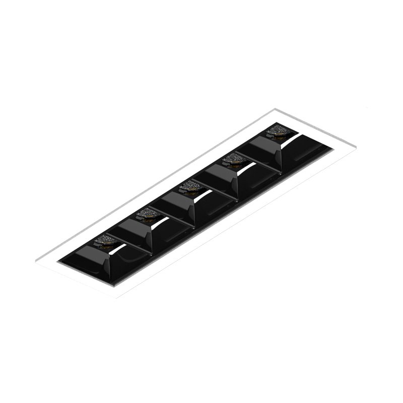 Embutido LED retangular com opção de 1, 3 e 5 focos fixos recuado. corpo e refletor fabricado em policarbonato injetado.