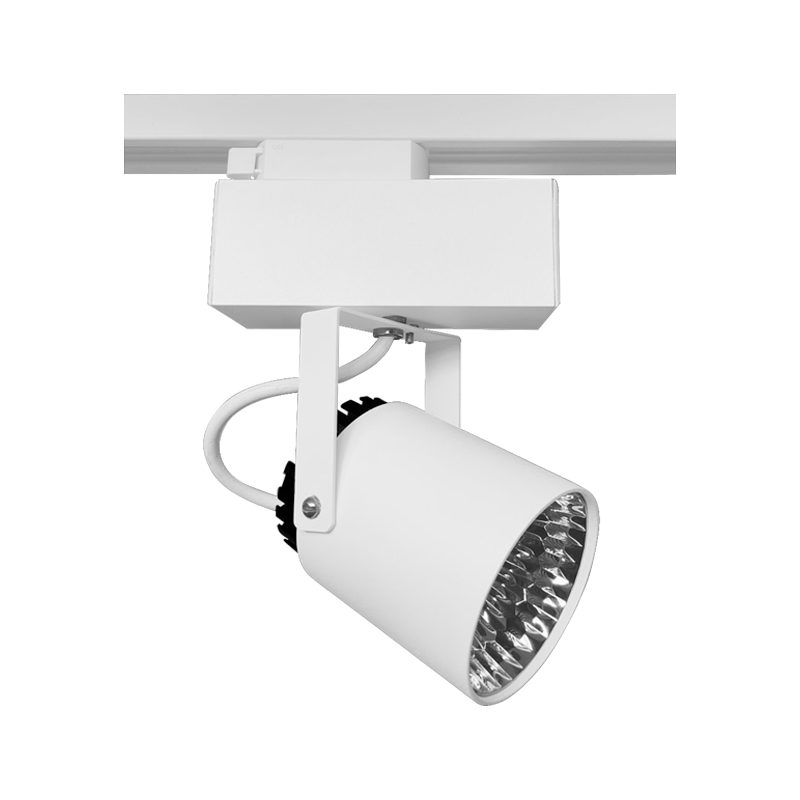 Spot projetor com foco direcionável para fixação em trilho eletrificado. Corpo fabricado em alumínio, acabamento em pintura eletrostática. Refletor em alumínio metalizado alto brilho.