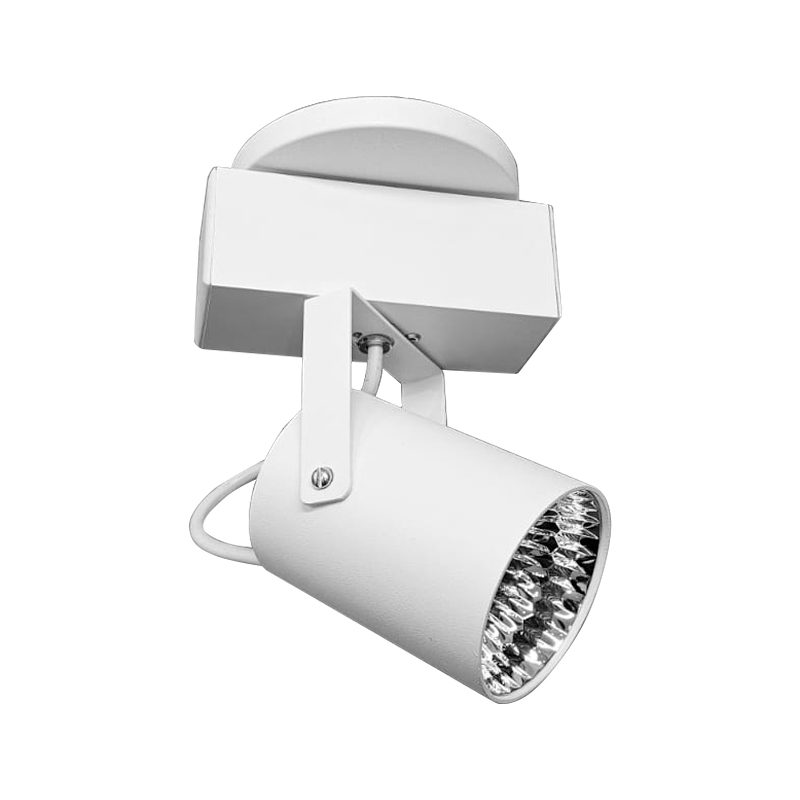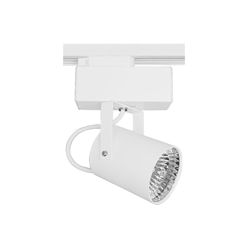 Spot projetor com foco direcionável para fixação em trilho eletrificado. Corpo fabricado em alumínio, acabamento em pintura eletrostática. Refletor em alumínio metalizado alto brilho.