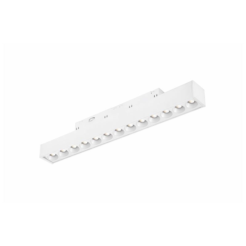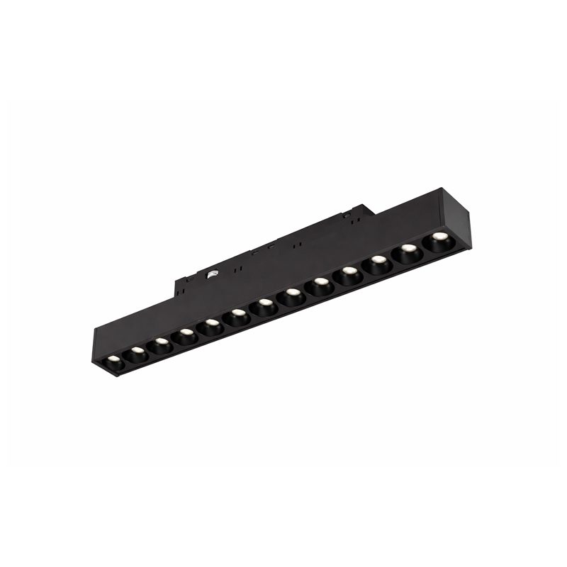 Spot LED linear magnético com pontos focais para fixação em trilho eletrificado magnético. Fabricado em alumínio com acabamento em pintura eletrostática.