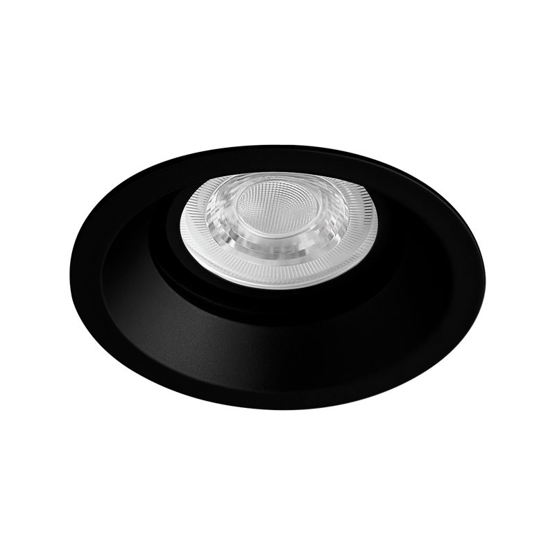 Luminária circular com foco fixo recuado, para instalação embutida em forro gesso. Corpo fabricado em alumínio repuxado, acabamento pintura eletrostática.