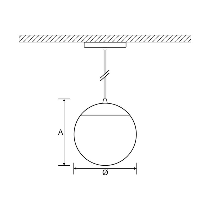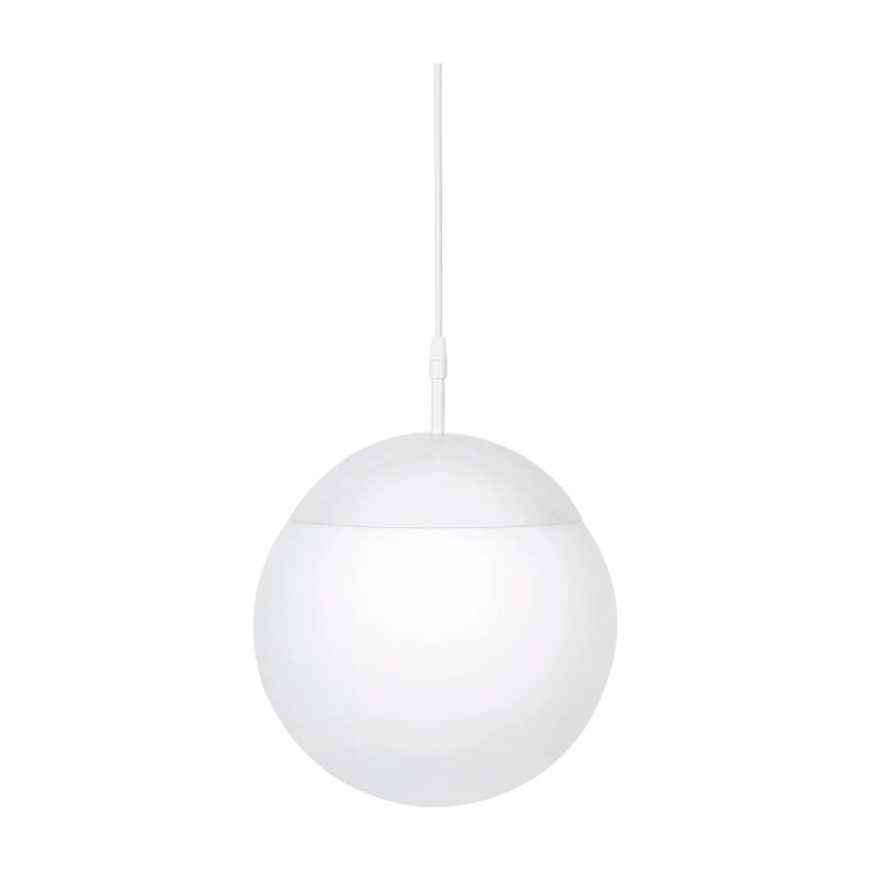 Luminária globo decorativa com iluminação difusa, para instalação pendente. Corpo fabricado em alumínio repuxado, acabamento em pintura eletrostática. Difusor em globo de polietileno translúcido.