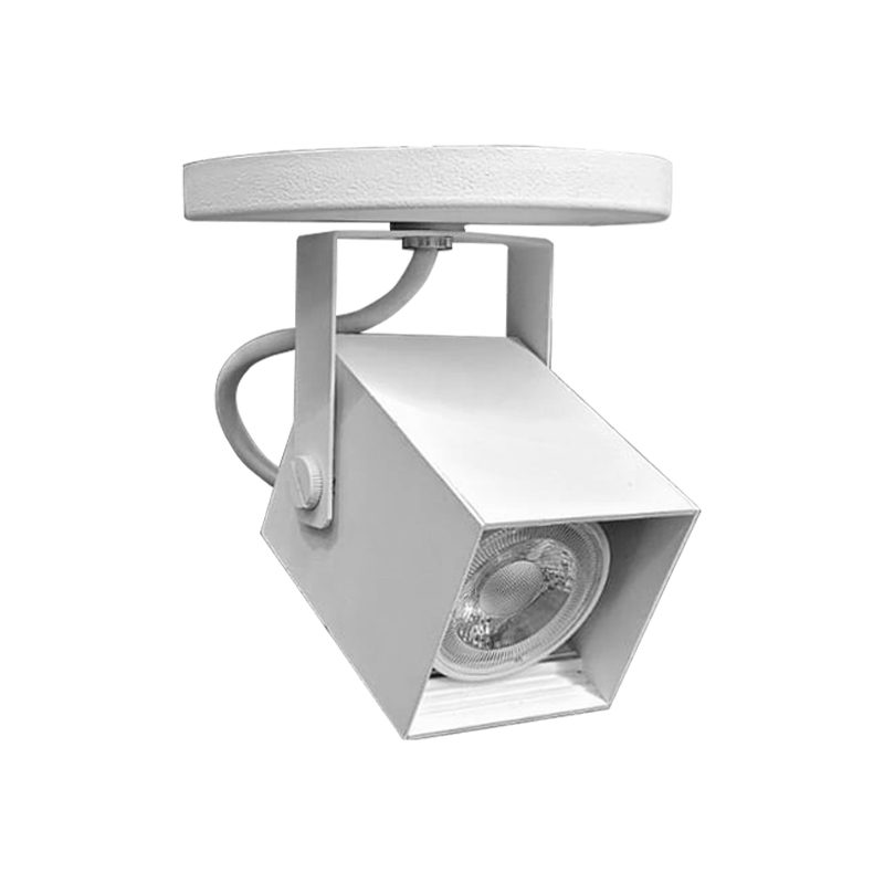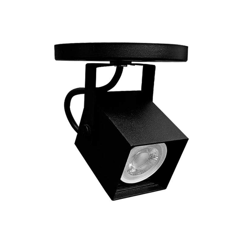 Spot projetor quadrado com foco direcionável para fixação em trilho eletrificado. Corpo e anel antiofuscante fabricados em alumínio, acabamento em pintura eletrostática.