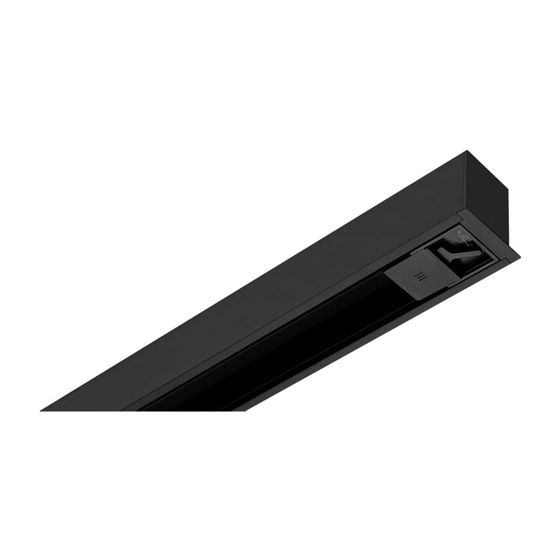 Trilho eletrificado de 1 circuito, para instalação embutida em forro. Corpo fabricado em alumínio, com acabamento em pintura eletrostática.