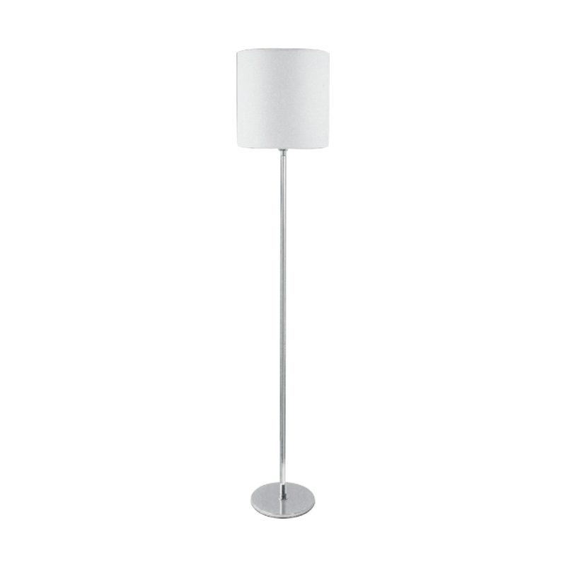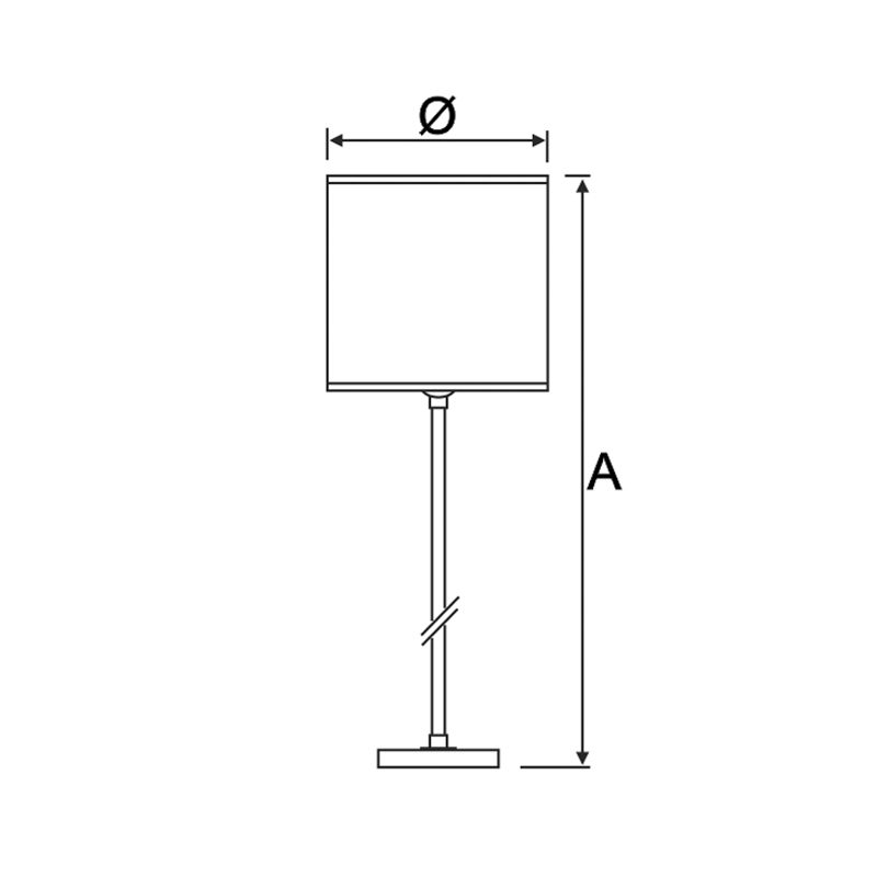 Abajur de piso, fabricado em latão com acabamento polido e cromado ou em pintura por processo eletrostático. Cúpula cilíndrica com estrutura em metal aramado envolto em tecido.