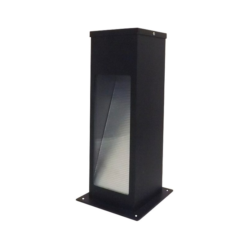Balizador externo com facho de luz assimétrico, para instalação sobreposta em solo. Fabricado em alumínio extrudado, acabamento em pintura eletrostática. Refletor em alumínio anodizado. Difusor em vidro plano temperado jateado.